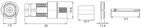 12-222L - ВЧ разъем серии 1.5/5.6, мама (розетка), угловая, прижимная, под радиочастотный кабель RG-174