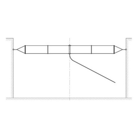 1. При горизонтальном размещении антенны выберите точки крепления на мачтах, зданиях или деревьях на расстоянии не менее 28 м друг от друга. Для «Inverted V» установите мачту необходимой высоты или выберите подходящее дерево, установите стойки или обеспечьте другие опоры для нижних концов полотна на соответствующих расстояниях. Между точкой подключения кабеля (середина антенны) и крайними стойками должно быть примерно 15 м.