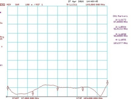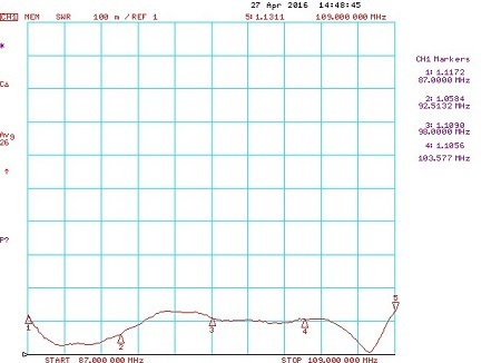 Специальная схема согласования диполей и фазирования линии сложения обеспечивает работу антенны с низким КСВ во всей полосе FM диапазона 87,5-108 МГц. А это требуется для подключения через комбайнер нескольких передатчиков.