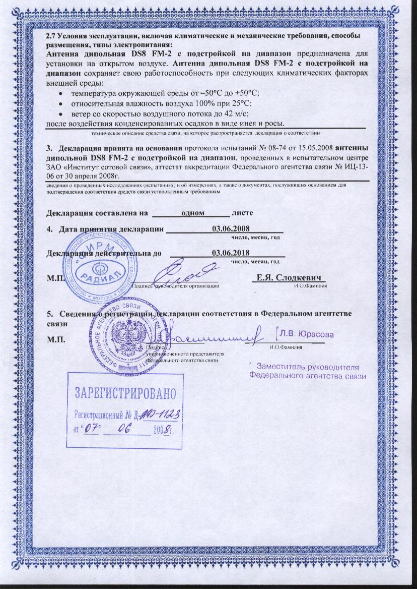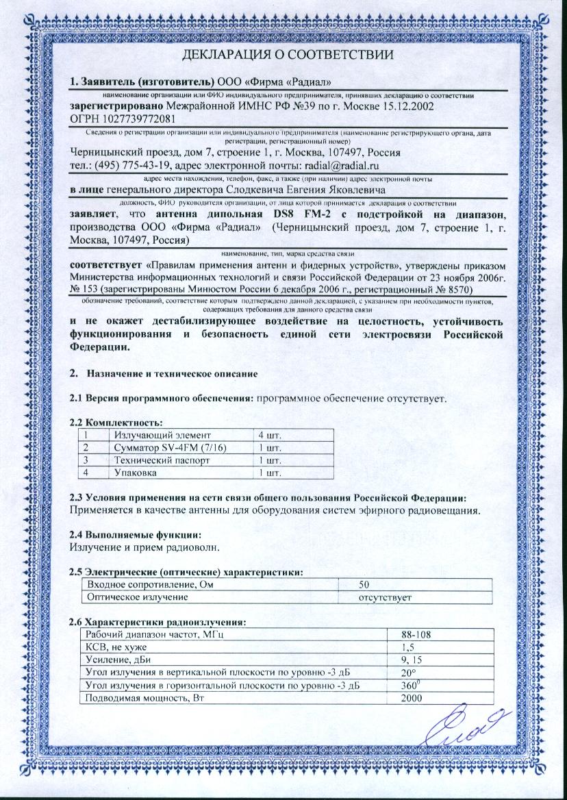 Антенна DS8-FM находит широкое применение в случае расположения передатчика радиостанции в центре города на высотном здании. В этой антенне соединены все достоинства диполей серии "DS": круговая диаграмма в горизонтальной плоскости, широкая рабочая полоса, низкий КСВ, высокая подводимая мощность, максимальная степень грозозащиты и коррозийной устойчивости, удобство в транспортировке.