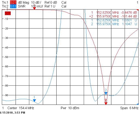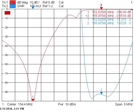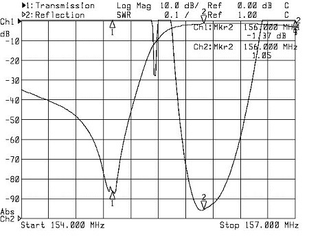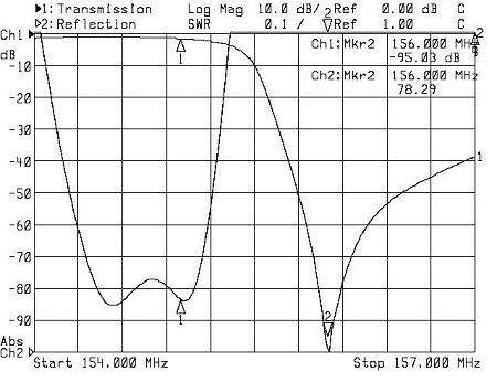 Малогабаритный шестирезонансный режекторный дуплексер, диапазон VHF, 146-156 МГц, разнос TX/RX 2-4.5/1-2 МГц, -0,8 dB, -80 dB, 100 Вт.
