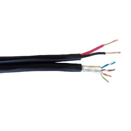 Кабель FTP 5E с дополнительным питанием Eletec 4x2x0.5 + 2x0.75 outdoor, медный, 4 пары, черный, для наружной проводки (бухта 200 метров)
