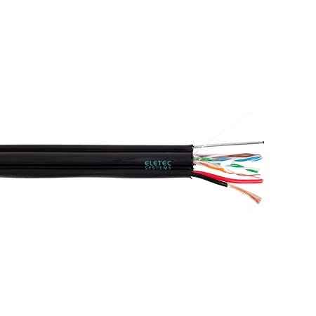 Кабель FTP 5E с дополнительным питанием Eletec 4x2x0.5 + 2x1.0 outdoor, медный, 4 пары, черный, для наружной проводки, с тросом