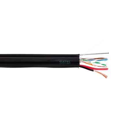 Кабель UTP 5E с дополнительным питанием Eletec 4x2x0.5 + 2x0.75 outdoor, CU, 4 пары, черный, для внешней проводки, с тросом