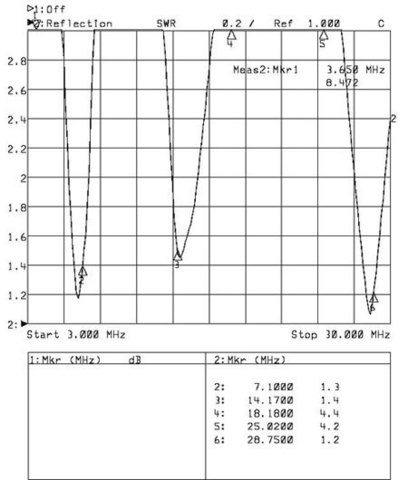 КВ антенна любительских диапазонов 40, 20, 17, 12, 10 метров. 100 Ватт.