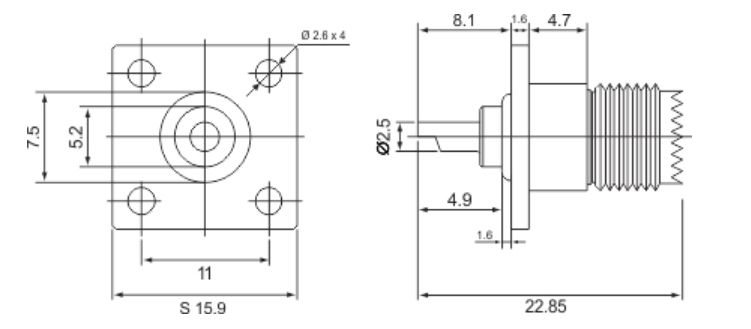 M-245 - коаксиальный ВЧ разъем Mini UHF серии, мама (розетка), приборный с фланцем.
