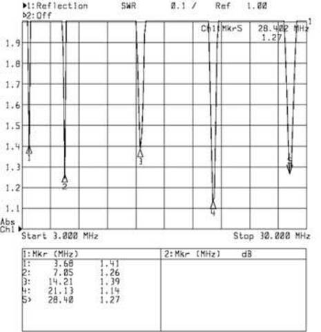 • два висящих усика наконец-то позволили «запустить» антенну и на диапазоне 21 МГц с отличным КСВ;