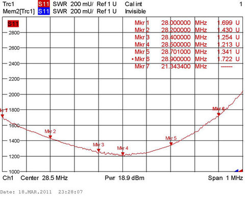 Каждый конструктивный трап состоит их двух параллельных LC контуров. Внутренний фильтр настроен на 28 МГц диапазон, наружный на 21 МГц диапазон Причём у каждого элемента частота среза фильтра отличается и соответствует частотам, указанным на рисунке.