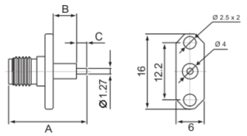 S-2452, разъем SMA, мама (розетка), приборный с фланцем (2 отверстия), центральный контакт под пайку.
