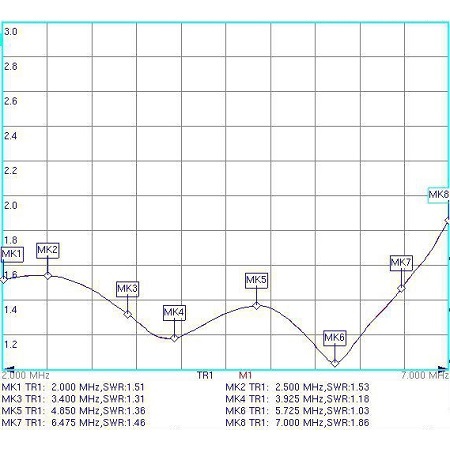Благодаря балластному резистору полоса пропускания данной антенны чрезвычайно широкая. Однако, эффективность антенны на низких частотах хуже обычного полуволнового диполя.