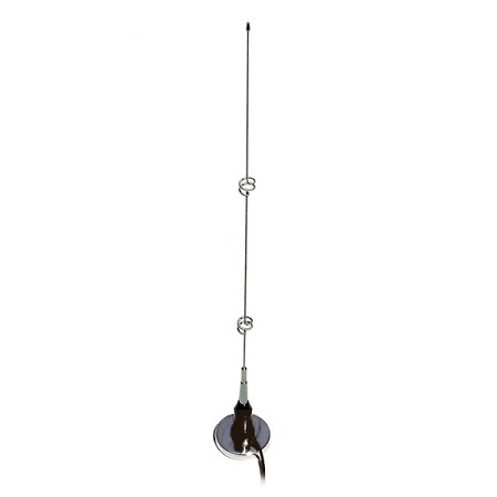 В комплект входит коаксиальный кабель RG58/U длиной 4м с разъемом BNC, хромированное магнитное крепление диаметром 85 мм с основанием PL. Длина штыря антенны 720мм. Производство Япония.