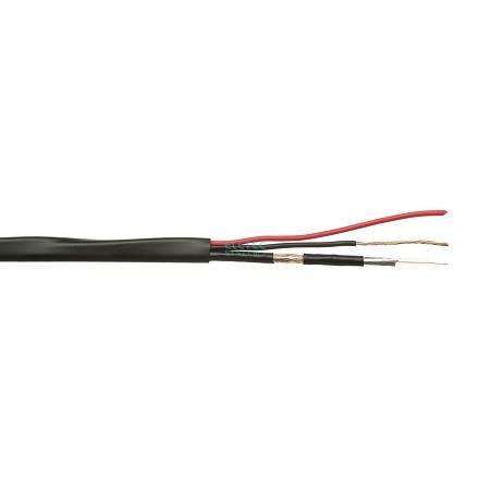 Кабель коаксиальный комбинированный КВК-П-2Э 2x0.50 мм2 outdoor 75 Ом, черный, для внешней проводки (бухта 200 метров)